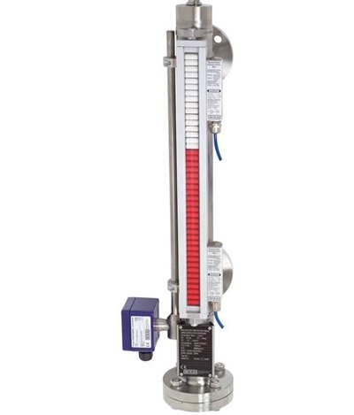 磁翻板液位計/液位表的浮子中的永磁體磁場可以穿過旁路腔體管壁觸發(fā)顯示體翻轉(zhuǎn)180°。液位上升時由白轉(zhuǎn)紅,液位下降時由紅轉(zhuǎn)白。因此磁翻板液位計/液位表 可實現(xiàn)在無需供源的情況下清晰指示罐體內(nèi)液位。