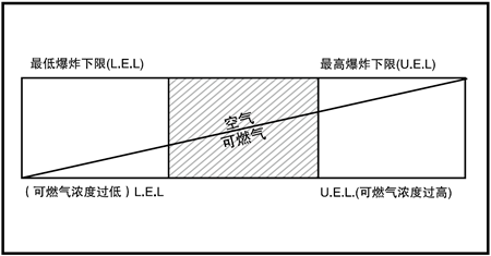 可燃性氣體混合氣的濃度只有在 LEL 和 UEL 之間才會被點燃,但是任何濃度的可燃性氣體都不容忽視。低濃度的可燃性氣體可能會在某一地區(qū)聚積,從而達(dá)到或超過最低爆炸下限 LEL;高濃度的可燃性氣體也有可能被稀釋,從而低于最高爆炸上限 UEL,最終引起爆炸。