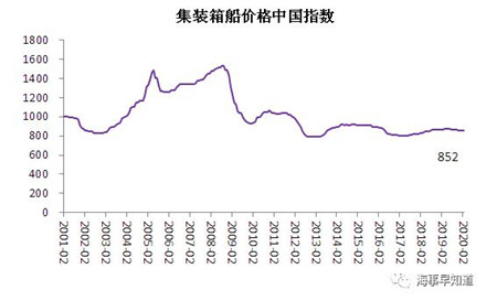 2020年2月,新造船價格中國指數(shù)為1112點,環(huán)比下降3點。其中,散貨船、集裝箱船的新造船價格中國指數(shù)分別為1352點、852點,環(huán)比分別下降6點、4點;油船新造船價格中國指數(shù)為1198點,環(huán)比持平;液化氣船新造船價格中國指數(shù)為1389點,環(huán)比上升2點。