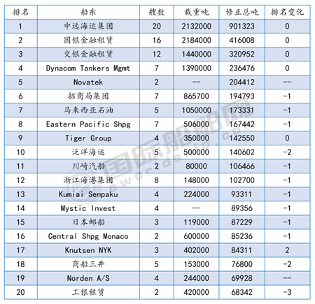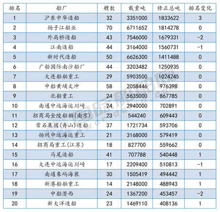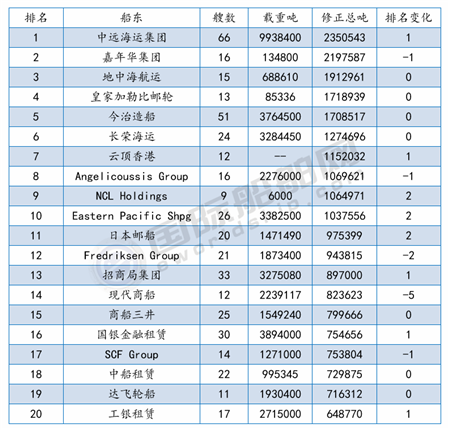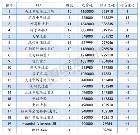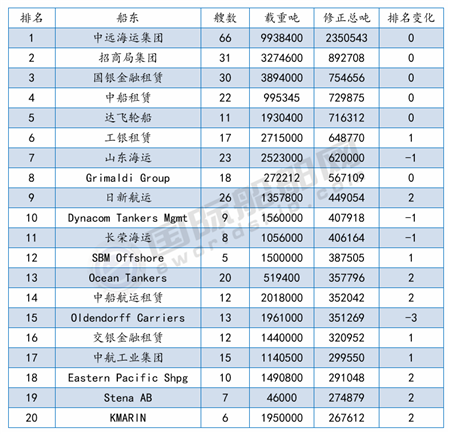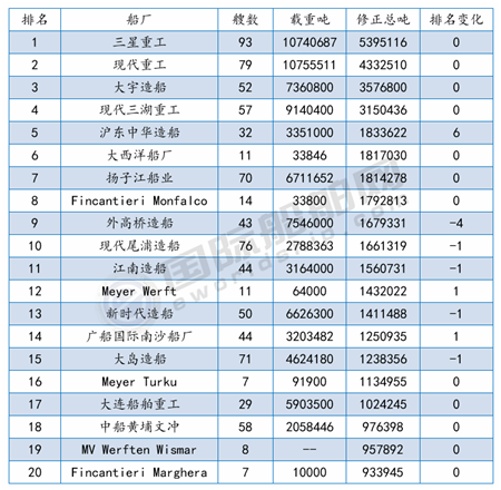 注:排名按修正總噸,排名變化為正數(shù)代表排名上升,負數(shù)代表排名下降