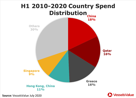 其中,中國(guó)是最大的訂船國(guó),占新訂單總額的四分之一以上。