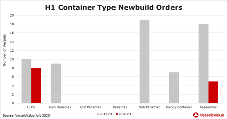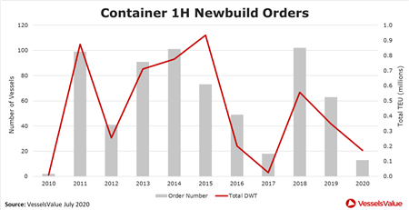 2020 年上半年的集裝箱船訂單總量是 2010 年以來(lái)最低的,與去年同期相比,下挫了近 400%。