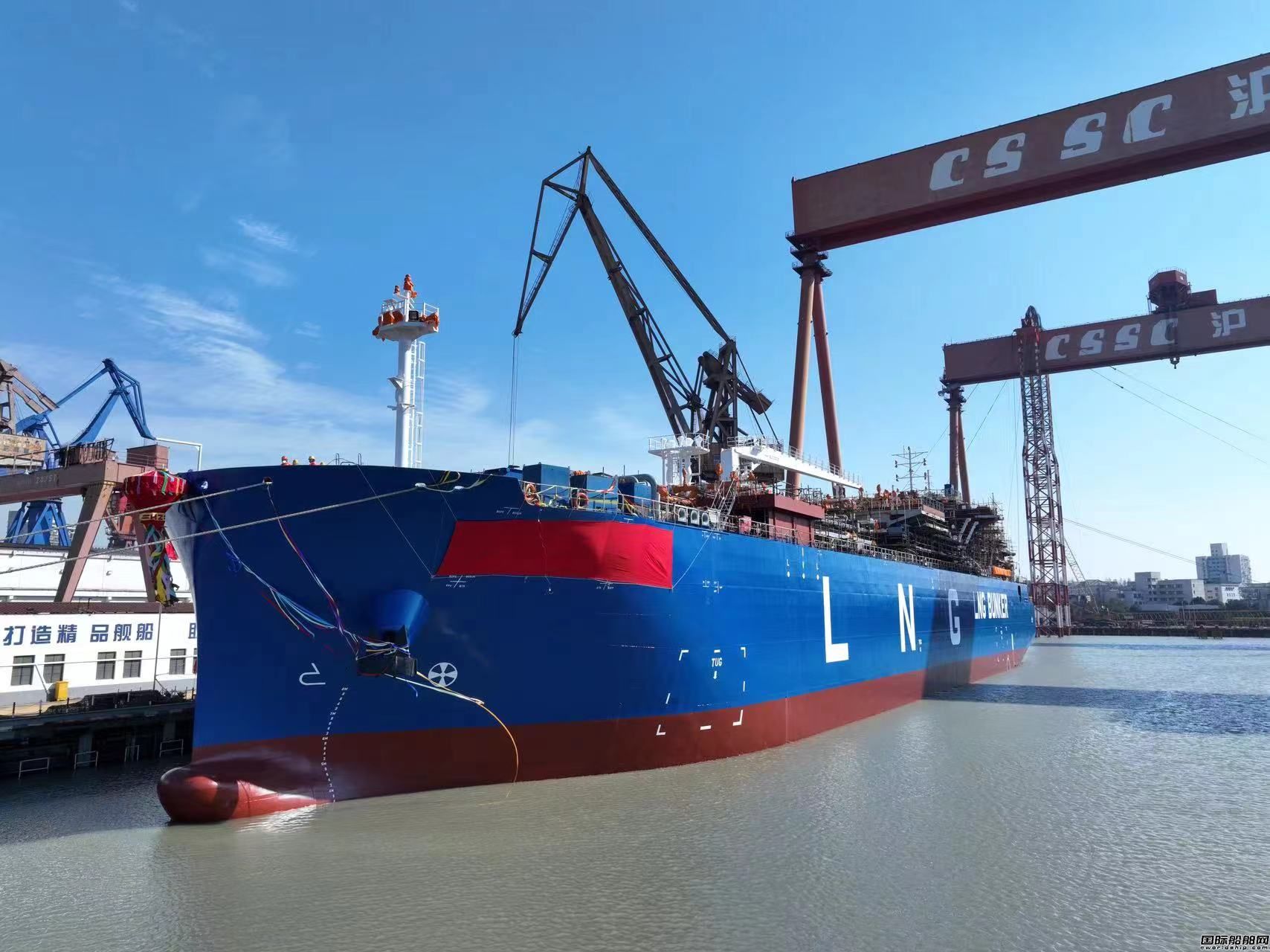 滬東中華全球首款江海直達型LNG加注運輸船出塢