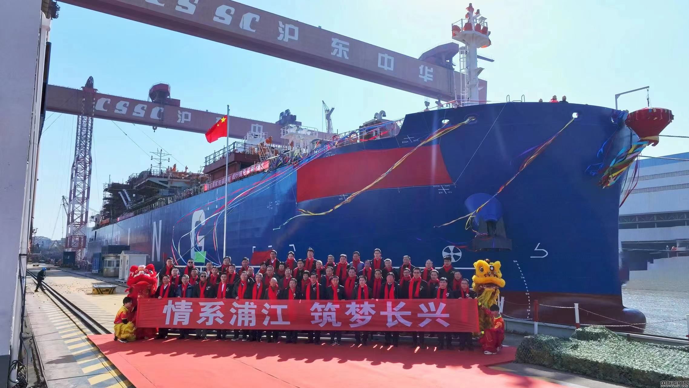 淮河能源控股集團黨委委員、副總經(jīng)理韓家章,安徽省能源局油氣處副處長顏培兵,淮河能源燃氣集團黨委書記、董事長莊家漢,滬東中華老廠長周振柏、總經(jīng)理陳軍共同為新船出塢剪彩敲香檳。滬東中華領導胡敬東、遲本斌、鄭豪、羅樂、宋煒、金燕子,勞模工匠代表俞洪昌、張冬偉、周慰慈、魏鳳云、王學宇、林濤及各方嘉賓60余人出席活動。