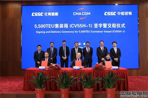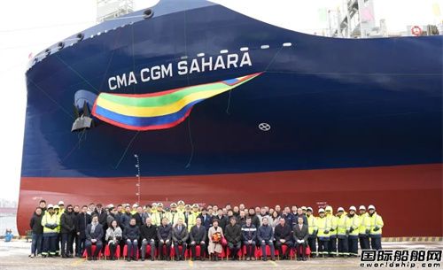 2月1日,中國船舶集團青島北海造船有限公司和中國船舶工業(yè)貿(mào)易有限公司作為聯(lián)合賣方,為達飛海運集團建造的首艘5500TEU集裝箱船“CMA CGM SAHARA”(達飛撒哈拉)號命名交付。