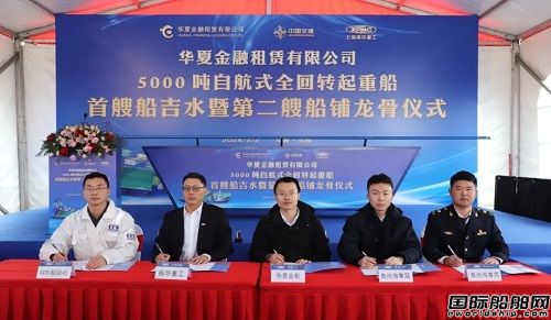 2月2日上午10點(diǎn)18分,南通振華重裝舉行華夏金融租賃有限公司5000噸自航式全回轉(zhuǎn)起重船首艘船吉水暨第二艘船鋪龍骨儀式。