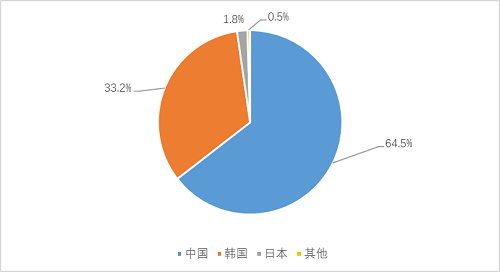 2月,中國船廠成交新船訂單68艘707萬載重噸(162萬修正總噸),按載重噸計,全球市場份額達64.5%。韓國船廠成交新船訂單30艘364萬載重噸(177萬修正總噸),按載重噸計,全球市場份額為33.2%,位居全球第二。日本船廠成交新船訂單2艘20萬載重噸(3.8萬修正總噸),按載重噸計,全球市場份額為1.8%,位居全球第三。