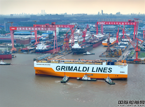 8月12日,外高橋造船為意大利GRIMALDI公司建造的9000車汽車運輸船“GRANDE MELBOURNE”號(H1605)和為挪威Frontline公司建造的15.8萬噸原油船“SEA PHOENIX”號(H1584)圓滿完成出塢任務。公司總監(jiān)李芝忠、GRIMALDI公司、Frontline公司、意大利船級社、美國船級社相關代表人員及公司相關部門負責人共同參加儀式。