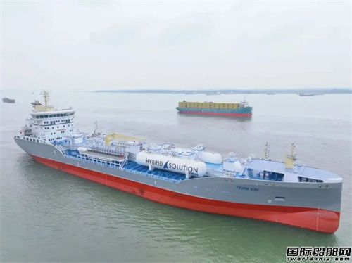 近日,招商工業(yè)揚(yáng)州鼎衡船廠為瑞典船東Terntank建造的15000噸甲醇雙燃料就緒化學(xué)品船“TERN LAND”順利交付運(yùn)營。