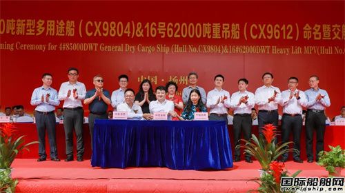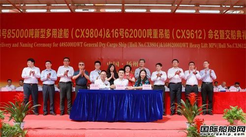 9月11日,中船集團(tuán)旗下中船澄西船舶修造有限公司為中信金融租賃有限公司建造的4號(hào)84500噸干散貨船和為交銀金融租賃有限責(zé)任公司建造的16號(hào)62000噸重吊多用途船在中船澄西揚(yáng)州公司同日命名交付。、...