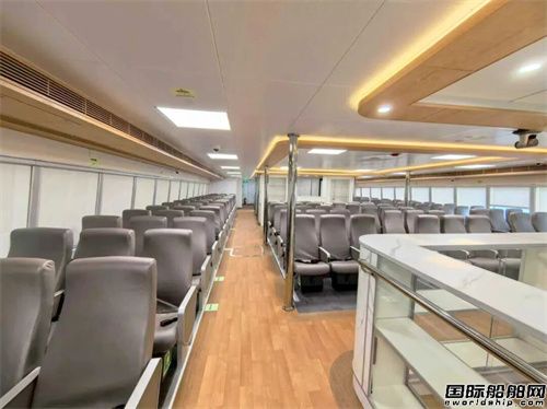“新迅隆壹號(hào)”由荷蘭CoCo Yacht設(shè)計(jì),該船為全鋁合金雙體結(jié)構(gòu),入級(jí)CCS,總長(zhǎng)40.33米,型寬10.0米,采用雙機(jī)雙泵推進(jìn),設(shè)計(jì)航速29.5節(jié),載客268位。該系列船延續(xù)了迅隆高速船型的經(jīng)典造型風(fēng)格,并在性能、舒適性、建造工藝及后期維護(hù)等方面進(jìn)行了系統(tǒng)性優(yōu)化設(shè)計(jì)。在提升乘船體驗(yàn)方面,除提供寬敞舒適的普通客艙外,還設(shè)有VIP室及商務(wù)艙,商務(wù)艙設(shè)計(jì)視野開(kāi)闊,通過(guò)精美的內(nèi)裝設(shè)計(jì),營(yíng)造出舒適的乘船環(huán)境。