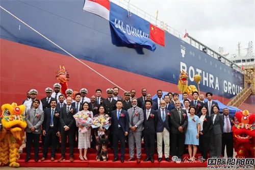 9月24日,揚(yáng)子三井為該船舉行了隆重的命名儀式。教母Shreya Karnati女士,命名贊助人Upasana Bothra女士,JALDHI CEO Suresh Kumar先生,勞氏船級(jí)社外國(guó)船東技術(shù)支持經(jīng)理Richard Welch先生,揚(yáng)子江船業(yè)集團(tuán)副總經(jīng)理兼揚(yáng)子三井總經(jīng)理宋書(shū)明先生及各合作方代表、員工等代表參加了命名儀式。