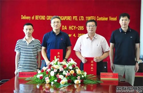 此前,9月3日,向荷蘭船東Curaçao Shipping Company N.V.交付一艘1800TEU集裝箱船;9月4日,向新加坡船東BEYOND GROUP (SINGAPORE) PTE. LTD.交付一艘1100TEU集裝箱船。