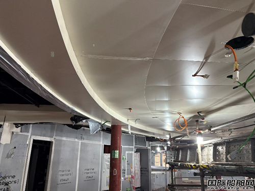 提前5個月!第二艘國產(chǎn)大型郵輪公共區(qū)域天花封板開工