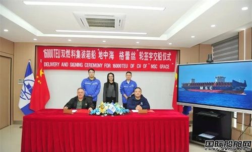 10月29日,地中海航運(yùn)(MSC)新造船中國(guó)區(qū)經(jīng)理CH Giuseppe Gargiulo先生與揚(yáng)子江船業(yè)集團(tuán)總經(jīng)理助理兼揚(yáng)子鑫福造船總經(jīng)理?xiàng)钛⿵┫壬謩e代表雙方簽署交船文件。