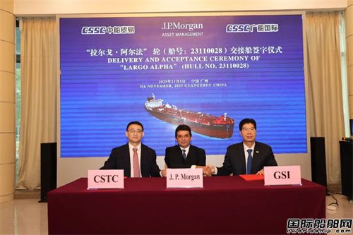 同日,廣船國(guó)際聯(lián)合中船貿(mào)易為J.P.Morgan Asset Management公司建造4.95萬(wàn)噸甲醇雙燃料化學(xué)品/成品油船3號(hào)船“LARGO ALPHA(拉爾戈·阿爾法)”號(hào)提前完工交付,該船型是廣船國(guó)際自主研發(fā)的新一代MR型油船產(chǎn)品,集經(jīng)濟(jì)性、安全性、智能性、環(huán)保性于一體,船舶性能卓越。