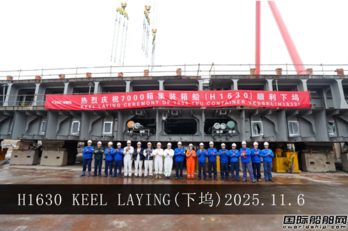 H1630船建造過(guò)程中,面對(duì)7月至9月持續(xù)高溫、頻繁降雨等不利天氣條件,項(xiàng)目團(tuán)隊(duì)始終以“確保總段100%完整性完工、按期下塢”為目標(biāo),科學(xué)統(tǒng)籌、密切協(xié)作,合理調(diào)配施工節(jié)奏,確保了各階段任務(wù)高效按時(shí)推進(jìn)。截至11月6日,H1630船艉半船總段已配齊26個(gè),完成率100%,整船總段已配齊32個(gè),完成率70%。大量的總段儲(chǔ)備為H1630船下塢后快速連續(xù)搭載創(chuàng)造了有利條件。