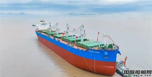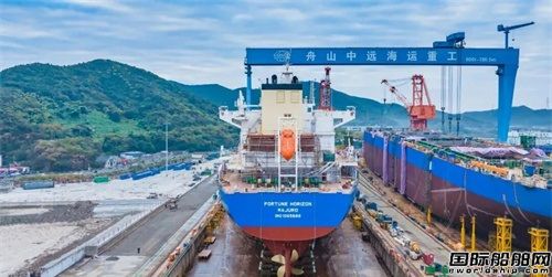 舟山中遠(yuǎn)海運(yùn)重工首制63600噸散貨船上水