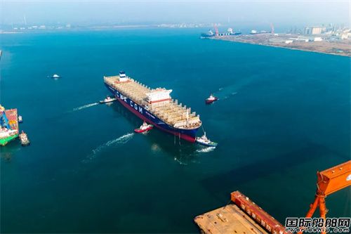 大船天津為達飛建造第三艘甲醇雙燃料集裝箱船出塢