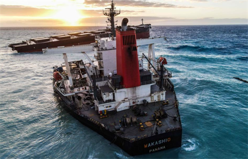 2020年7月25日,“Wakashio”輪在毛里求斯擱淺,這艘載重噸為203130噸的巨型干散貨船在幾天后被曝出由于遭遇惡劣天氣油艙破損,至少1000噸燃油泄漏至附近海域,造成巨大生態(tài)危機(jī)。
