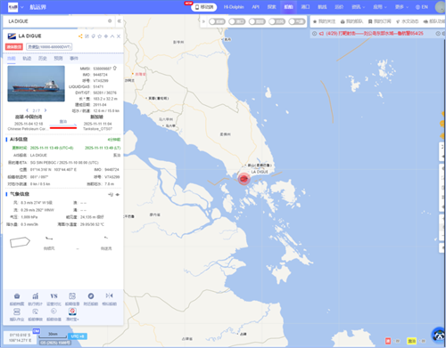 航運(yùn)界網(wǎng)戰(zhàn)略合作伙伴船視寶數(shù)據(jù)顯示,“La Digue”輪(2011年建造,50281載重噸),由Norden運(yùn)營。