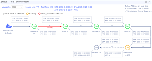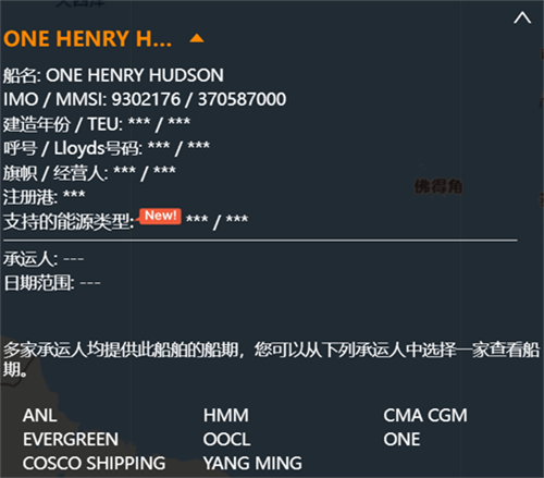 大船期數(shù)據(jù)顯示,“One Henry Hudson”輪此次承載的并非ONE一家,其共艙班輪公司中還包括達飛、HMM、東方海外、中遠海運、長榮海運及陽明海運。