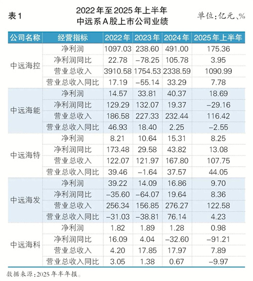 2025 年上半年,中遠(yuǎn)系五家A股上市公司先后發(fā)布半年報(bào)(見表1)。