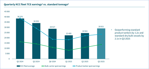 KCC首席執(zhí)行官Engebret Dahm表示,“在經(jīng)歷了相對疲軟的上半年之后,第三季度CABU和CLEANBU船隊的收益和盈利能力都有了顯著改善。2025年第四季度和2026年的前景仍然樂觀,這得益于更強勁的市場、CLEANBU新客戶的加入,以及明年合同續(xù)簽的良好前景。”