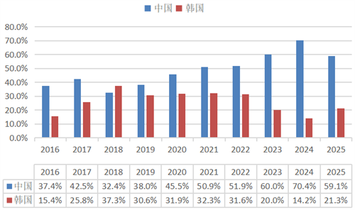 圖1. 2016-2025年1-10月新船訂單量市場(chǎng)份額(CGT計(jì))數(shù)據(jù)來源:克拉克森,中國船舶集團(tuán)經(jīng)濟(jì)研究中心。