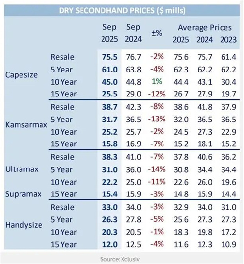 航運(yùn)界網(wǎng)消息,船舶經(jīng)紀(jì)公司Xclusiv數(shù)據(jù)顯示,2025年干散貨船和油輪二手船交易呈下降趨勢。...
