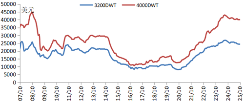 海工支持船運(yùn)營(yíng)市場(chǎng)由需求增長(zhǎng)和供給趨緊支撐。截至10月底,240噸系柱拉力三用工作船日租金為69892美元,同比上漲16%;4000載重噸平臺(tái)供應(yīng)船的日租金為40006美元,同比小幅下降3.4%,但仍較上一輪周期峰值2013年水平高33.6%。需求方面,受中東和巴西地區(qū)活躍的油氣勘探開發(fā)支撐,大型海工支持船需求旺盛;供給側(cè)方面,由于新船交付有限,船隊(duì)總量保持近十年低位,對(duì)市場(chǎng)供需關(guān)系形成了支撐。