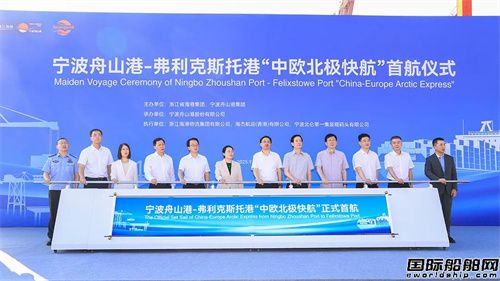9月22日下午,寧波舟山港-弗利克斯托港“中歐北極快航”首航儀式在寧波舟山港北一集司順利舉行,標(biāo)志著全球首條中歐北極集裝箱快航航線正式開(kāi)通。