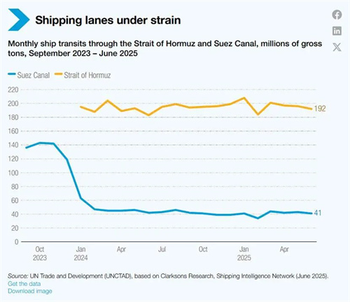 運(yùn)費(fèi)波動(dòng)性正顯著增強(qiáng)。例如,2024年紅海危機(jī)引發(fā)的供應(yīng)鏈中斷,當(dāng)即推高了運(yùn)費(fèi);而2025年持續(xù)的地緣政治緊張,則引發(fā)市場(chǎng)對(duì)霍爾木茲海峽航運(yùn)可能遭受溢出效應(yīng)的擔(dān)憂。