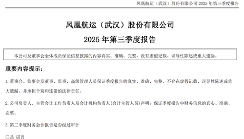 10月27日,鳳凰航運(yùn)(武漢)股份有限公司(證券代碼:000520,以下簡稱“鳳凰航運(yùn)”)披露2025年第三季度報(bào)告。